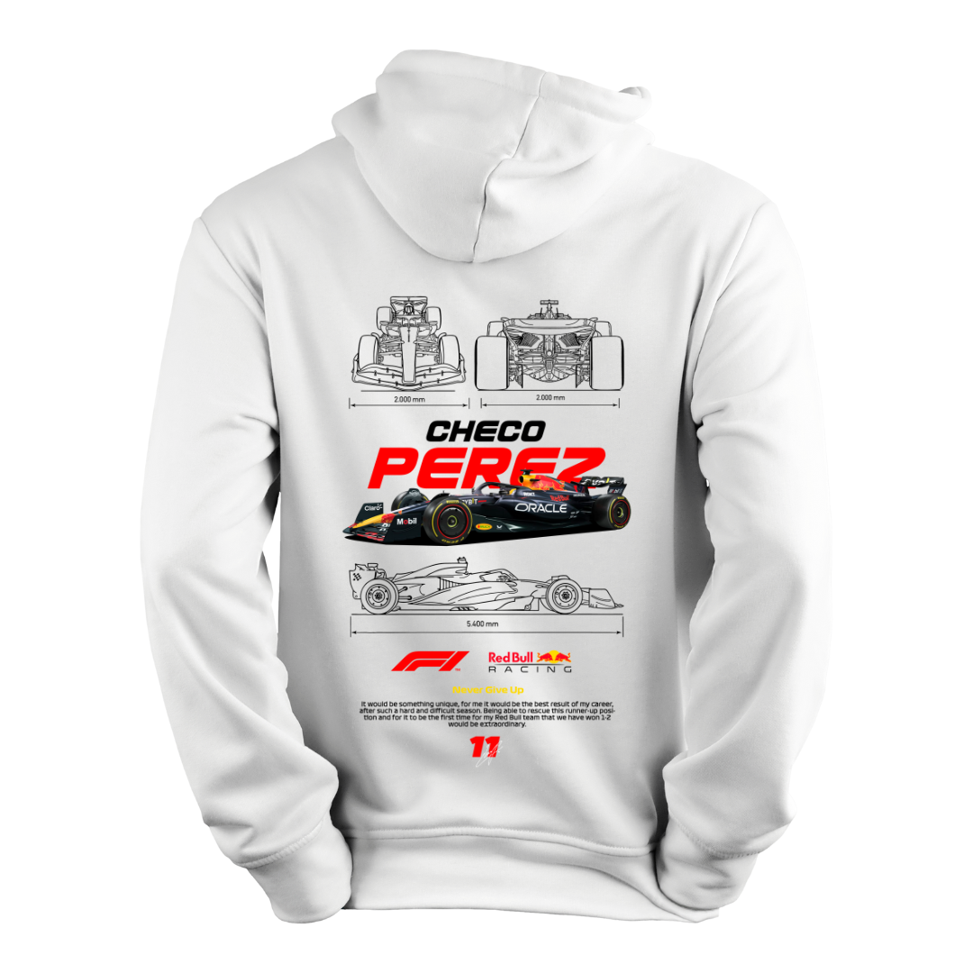 Haz de esta hoodie un reflejo de tu pasión por la velocidad y el orgullo mexicano con Checo Pérez. ¡Pide la tuya ahora y vive la emoción de la Fórmula 1 todos los días! 🌟